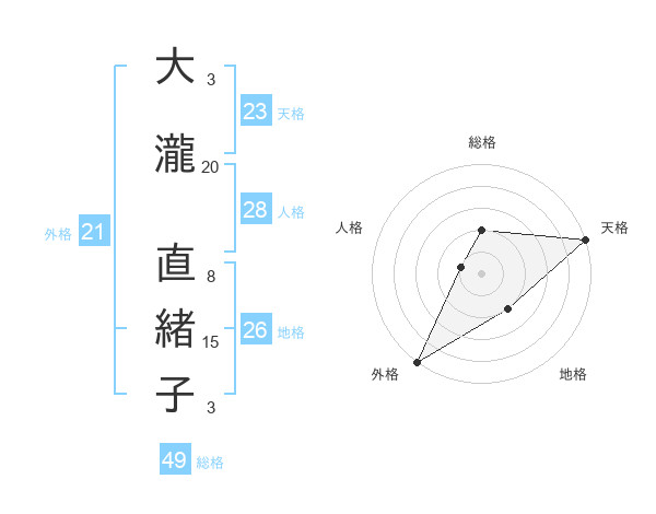 大瀧 直緒子さんを姓名の画数から五運を鑑定