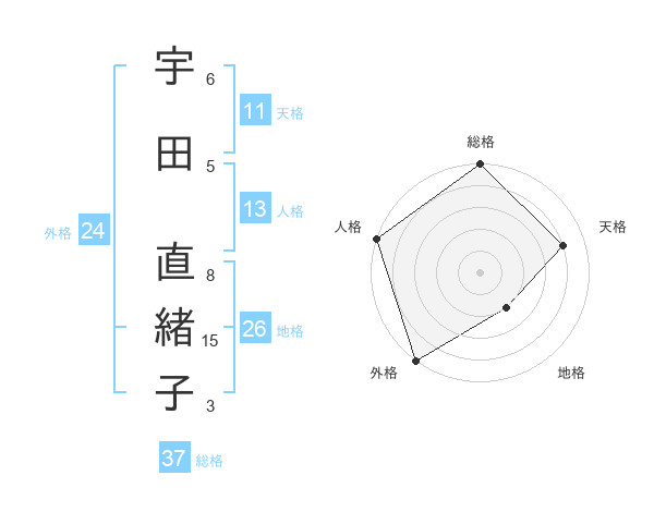 宇田 直緒子さんを姓名の画数から五運を鑑定