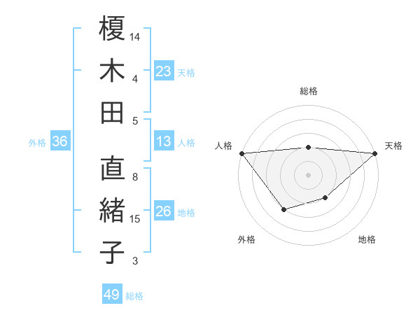 榎木田 直緒子さんの天格は23画の5点!