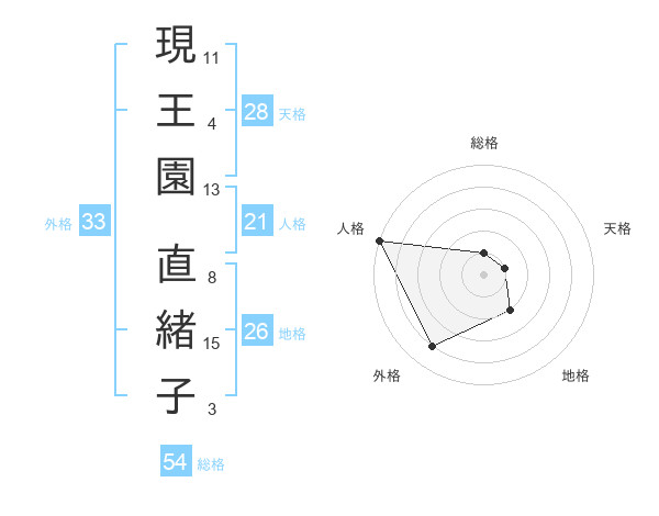 現王園 直緒子さんを姓名の画数から五運を鑑定