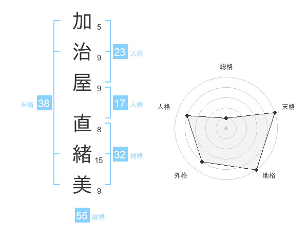加治屋 直緒美さんを姓名の画数から五運を鑑定
