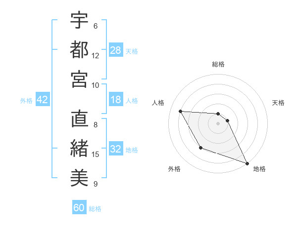 宇都宮 直緒美さんを姓名の画数から五運を鑑定