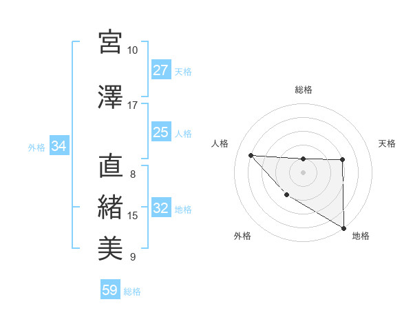 宮澤 直緒美さんを姓名の画数から五運を鑑定