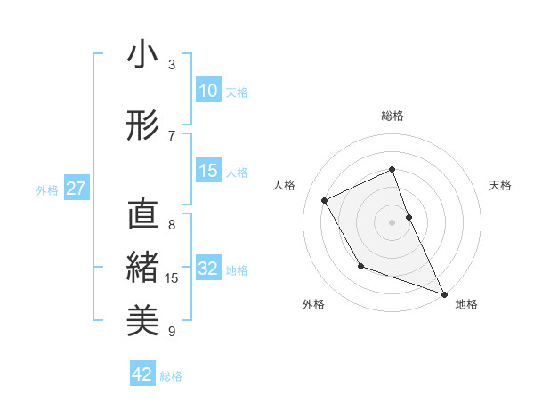 小形 直緒美さんを姓名の画数から五運を鑑定