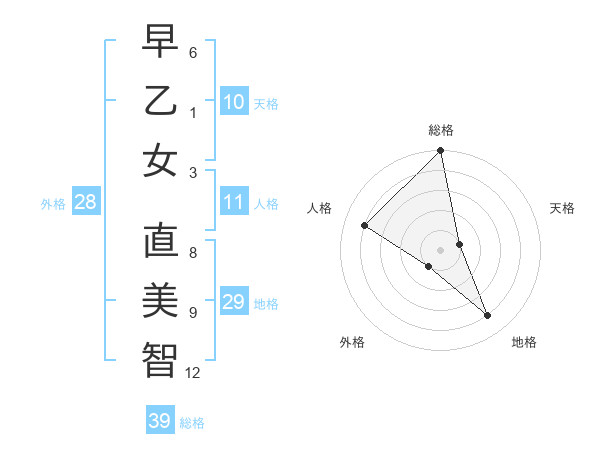 早乙女 直美智さんを姓名の画数から五運を鑑定