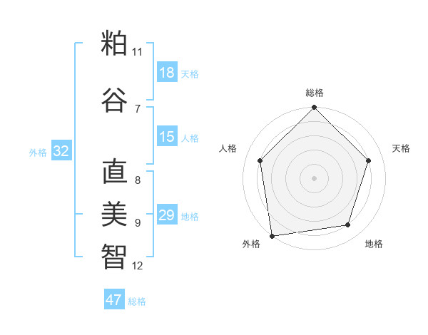 粕谷 直美智さんの総格は47画の5点!