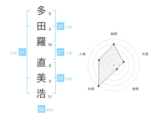 多田羅 直美浩さんを姓名の画数から五運を鑑定