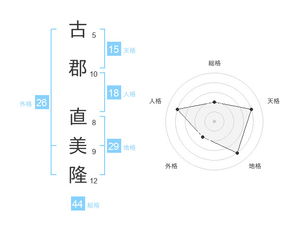 古郡 直美隆さんを姓名の画数から五運を鑑定