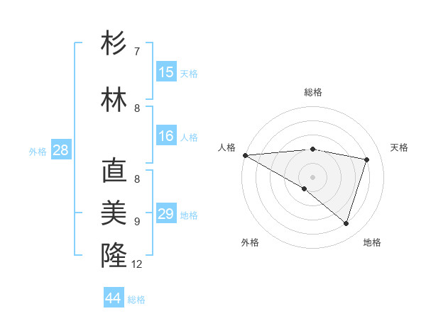杉林 直美隆さんの総格は44画の2点!