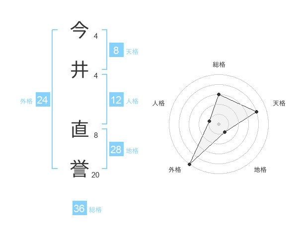 今井 直誉さんの天格は8画の4点!