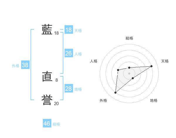 藍 直誉さんの天格は18画の4点!