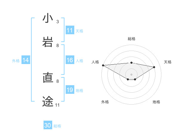 小岩 直途さんの総格は30画の2点!