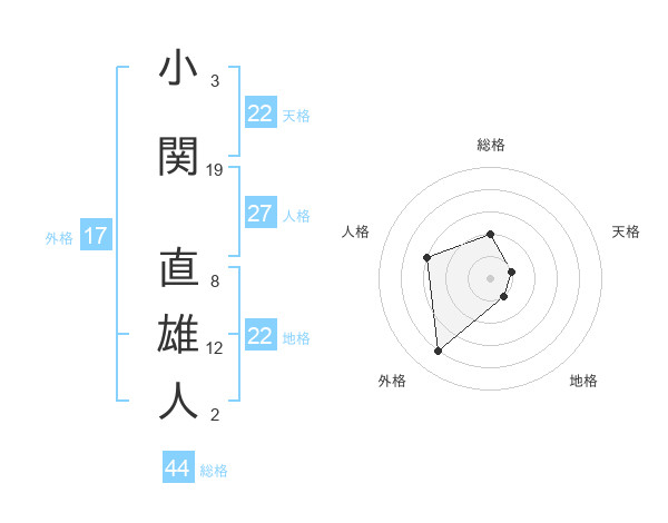小関 直雄人さんを姓名の画数から五運を鑑定