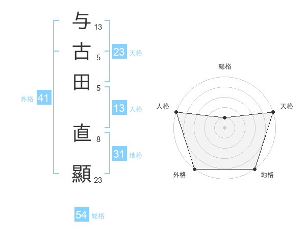 与古田 直顯さんを姓名の画数から五運を鑑定