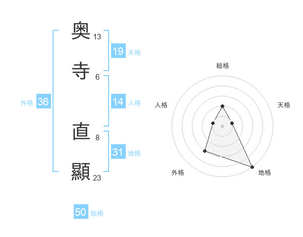 奥寺 直顯さんの総格は50画の2点!