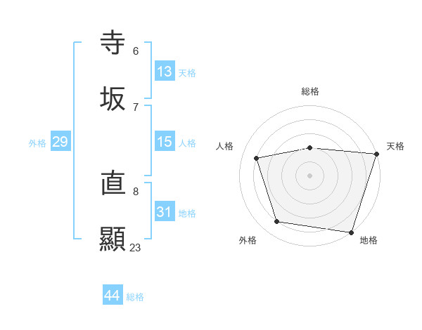 寺坂 直顯さんの総格は44画の2点!