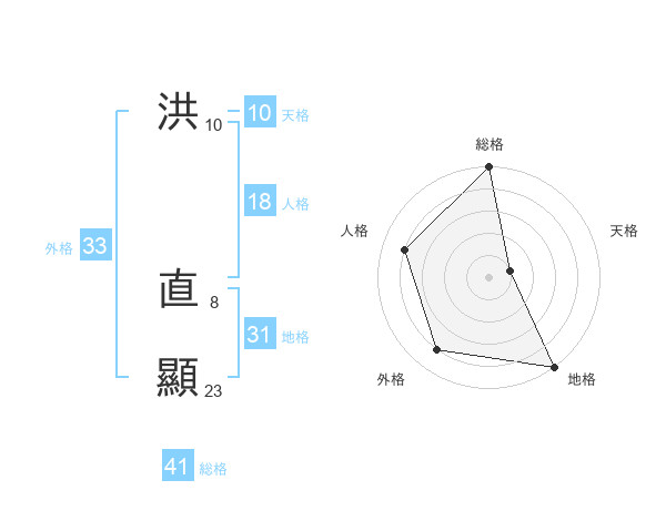 洪 直顯さんの総格は41画の5点!