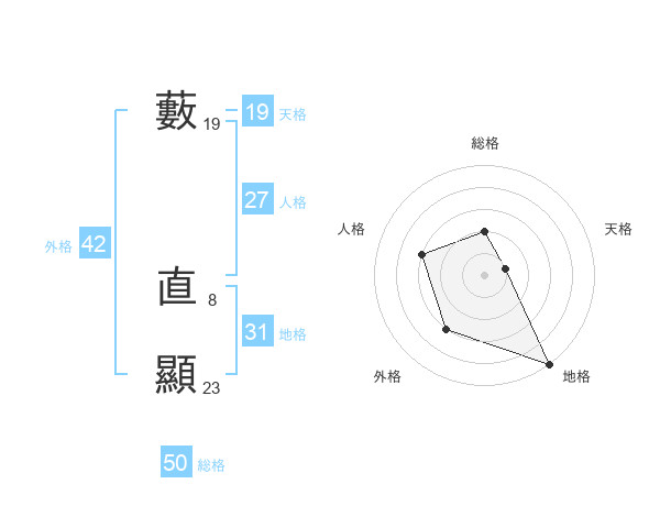 藪 直顯さんの天格は19画の1点!