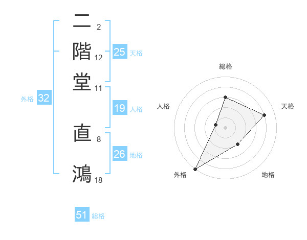 二階堂 直鴻さんの外格は32画の5点!