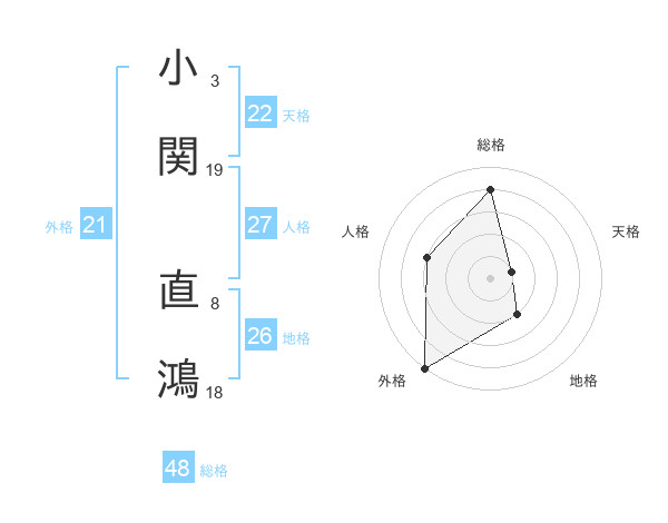 小関 直鴻さんを姓名の画数から五運を鑑定