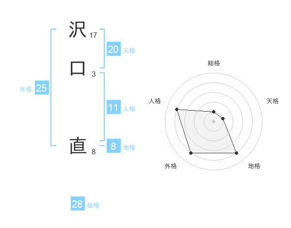 沢口 直さんの天格は20画の1点!