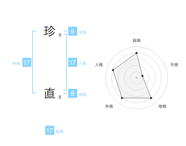 珍 直さんの総格は17画の4点!