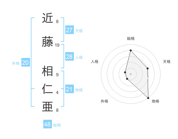 近藤 相仁亜さんを姓名の画数から五運を鑑定