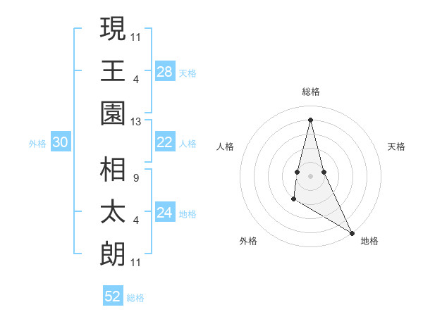 現王園 相太朗さんを姓名の画数から五運を鑑定