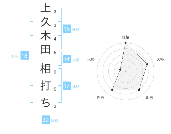 上久木田 相打ちさんの地格は17画の4点!