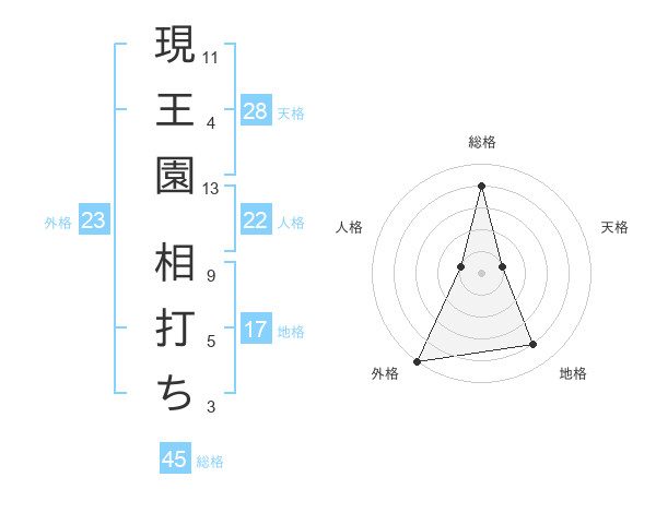 現王園 相打ちさんの総格は45画の4点!