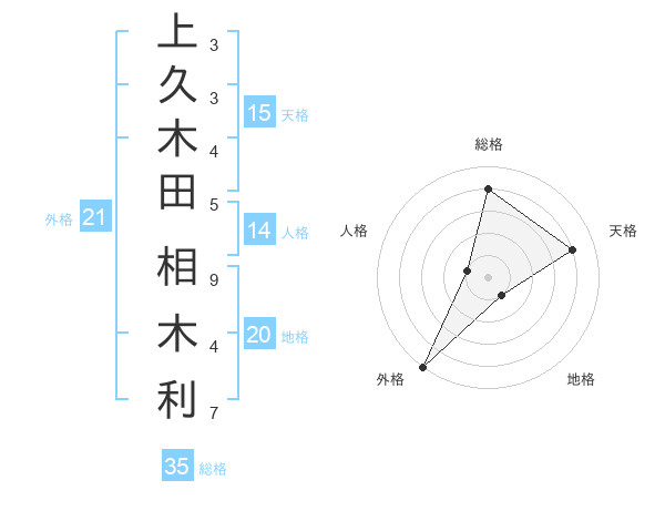 上久木田 相木利さんの総格は35画の4点!