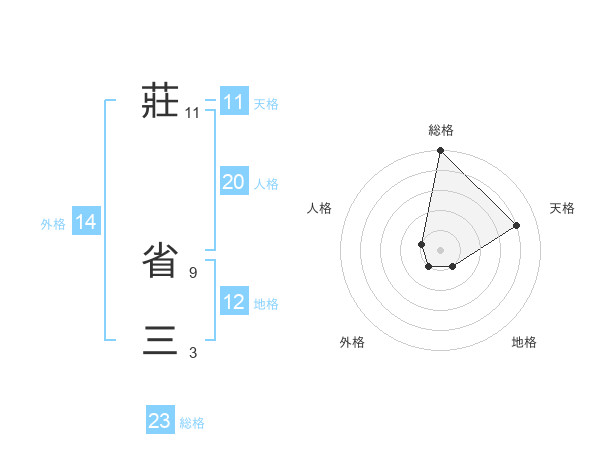 莊 省三さんの総格は23画の5点!