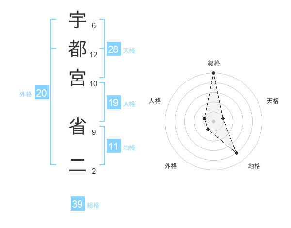 宇都宮 省二さんを姓名の画数から五運を鑑定