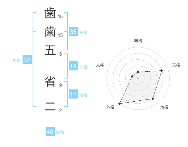 歯歯五 省二さんの外格は32画の5点!