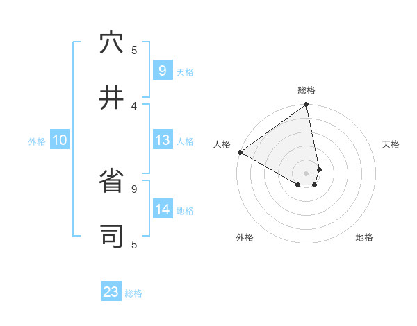 穴井 省司さんの総格は23画の5点!