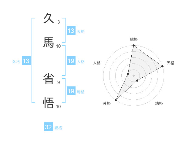久馬 省悟さんの天格は13画の5点!