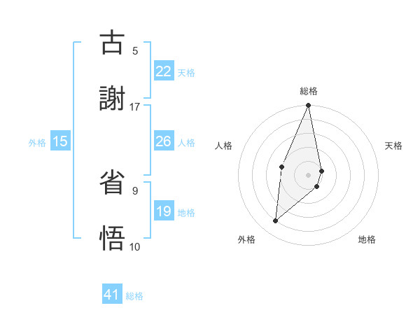 古謝 省悟さんを姓名の画数から五運を鑑定