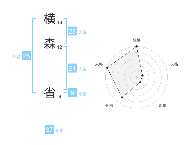 横森 省さんの総格は37画の5点!