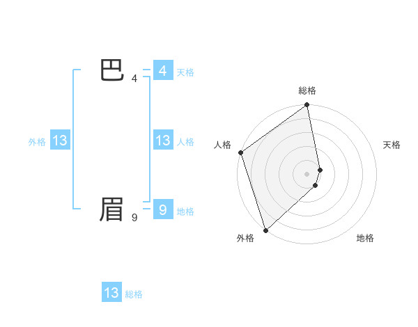 巴 眉さんの総格は13画の5点!