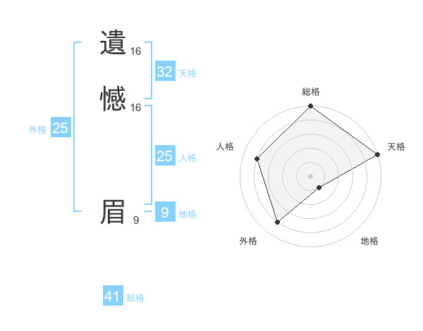 遺憾 眉さんの総格は41画の5点!