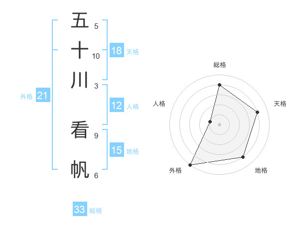 五十川 看帆さんを姓名の画数から五運を鑑定