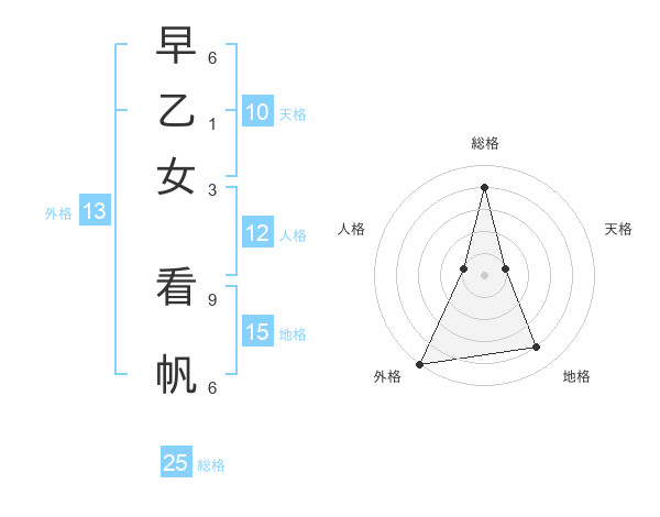 早乙女 看帆さんの総格は25画の4点!