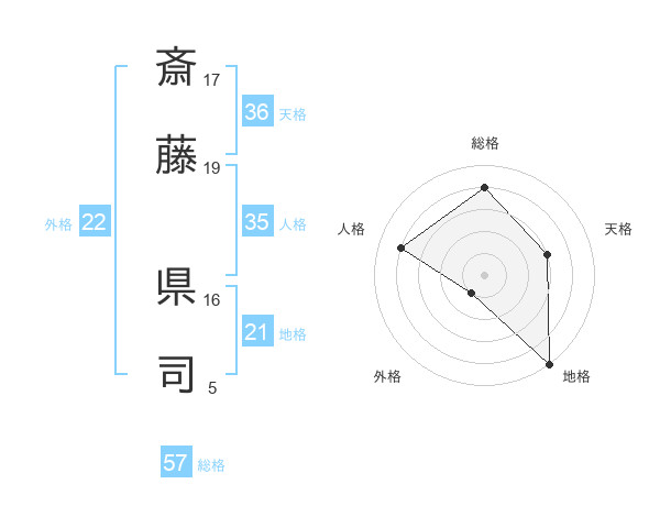 斎藤 県司さんを姓名の画数から五運を鑑定