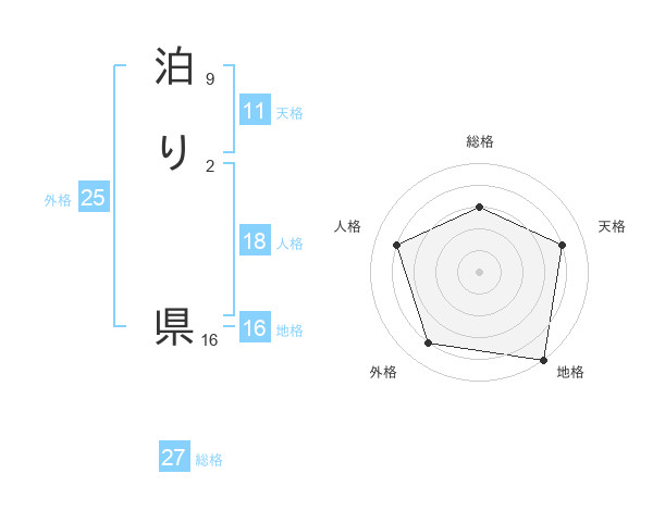 泊り 県さんの総格は27画の3点!