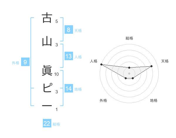 古山 眞ピーさんを姓名の画数から五運を鑑定