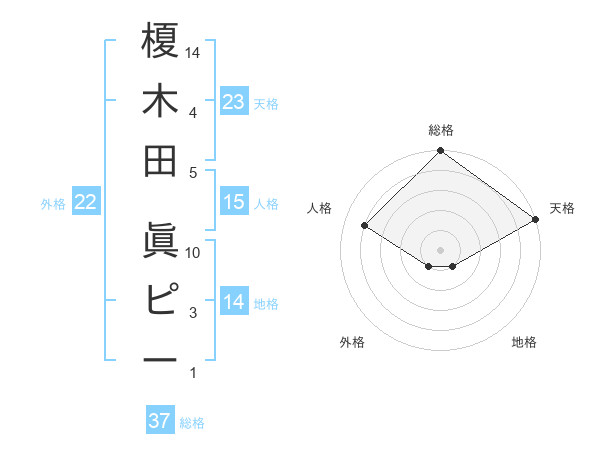 榎木田 眞ピーさんの総格は37画の5点!