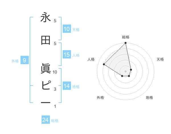 永田 眞ピーさんを姓名の画数から五運を鑑定