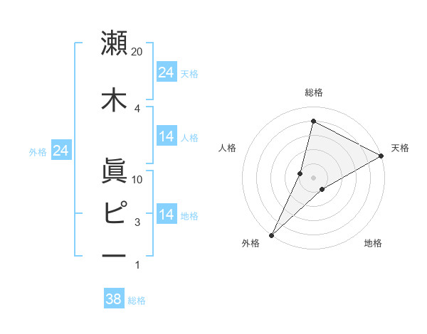 瀬木 眞ピーさんの総格は38画の4点!
