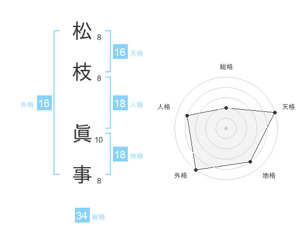 松枝 眞事さんの天格は16画の5点!