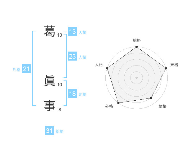 葛 眞事さんの総格は31画の5点!